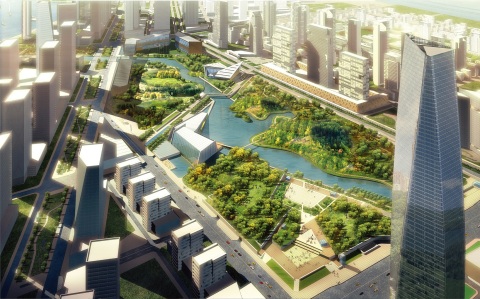 쾌적한 여가 공간 조성을 목표로 송도 국제 업무 단지 중심 공간 설계