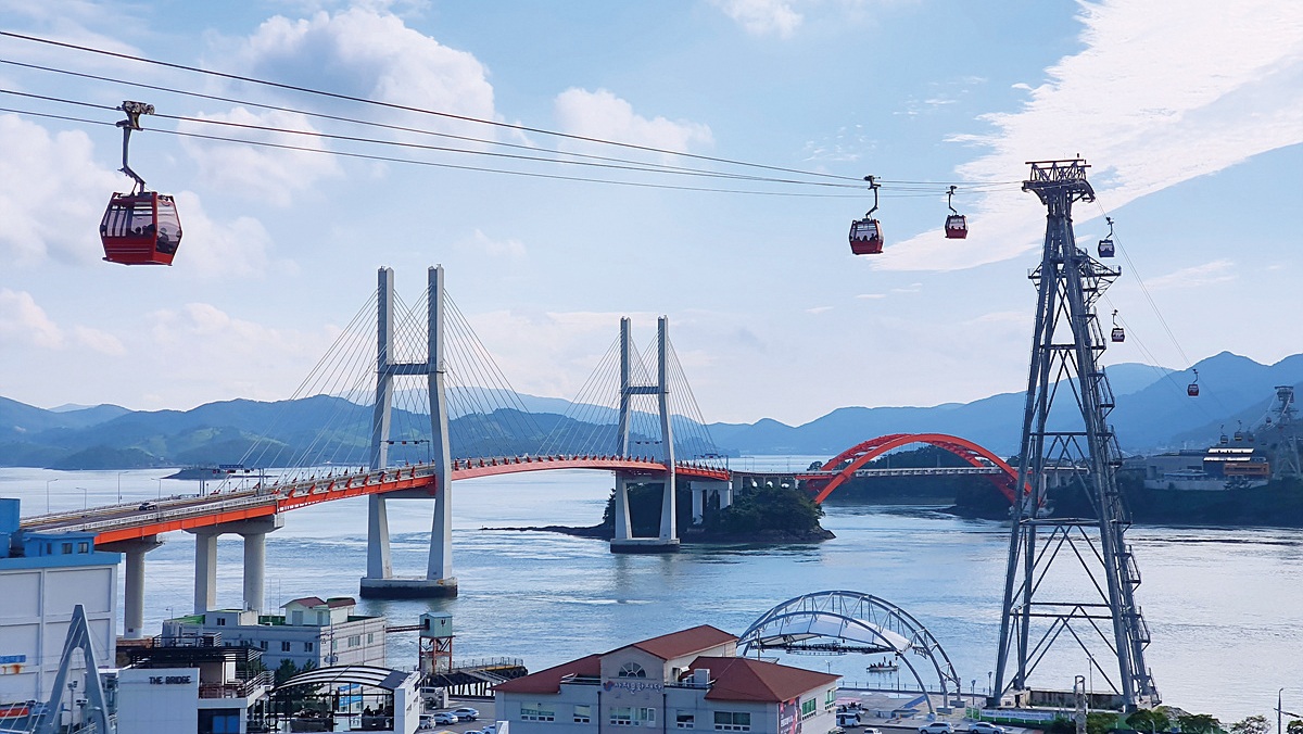 삼천포 일대 관광명소화 일환으로 각산-대방-초양도를 잇는 관광 케이블카는 한려해상국립공원 일대가 한눈에 보이는 아름다운 경관이 가장 큰 장점입니다. 국립공원 지역을 경유하기 때문에 환경과 경관 등 면밀한 검토와 협의 하에 설계를 추진했으며, 해상과 육상 구간을 경유하는 3개의 정거장을 도입하여 다양한 경관/체험을 할 수 있도록 계획하였습니다. 삭도 형식, 지주 형태/위치/간격, 정류장 위치 등 심도 있는 논의를 통해 결정하여 안전을 최우선으로 하는 케이블카를 만들고자 하였습니다. 타 케이블카 사업추진방식과 달리 삭도 설계를 통한 명확한 가이드라인 제시 후 제작사 대상으로 제작설치 공모를 함으로서 시행자 의견을 최대한 반영할 수 있도록 진행되었습니다.