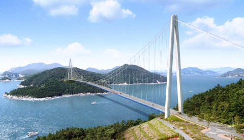 국내 최장경간 더블 타이드아치교 및 3차원 케이블 현수교 건설- 위치 전라남도 여수