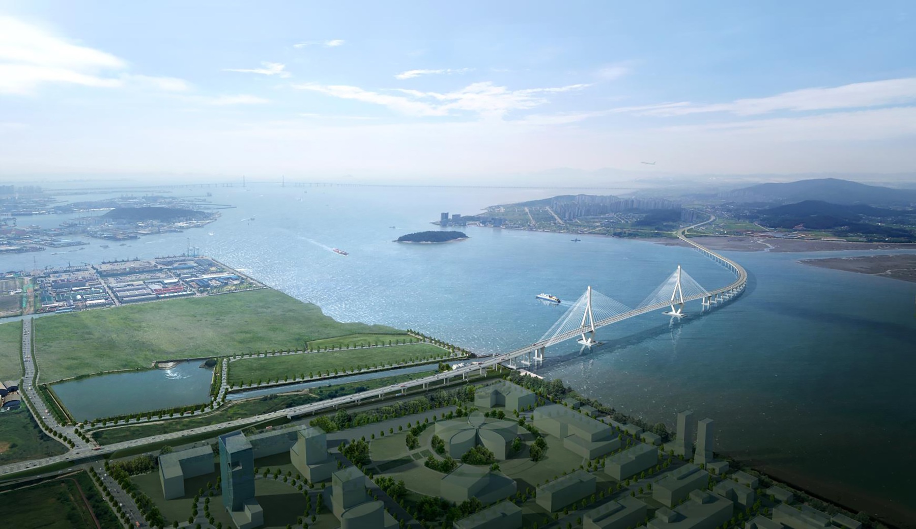 인천대교의 보조교량으로 경제성 및 경관성이 우수한 3경간 강합성 사장교 건설- 위치 인천광역시 중구-서구