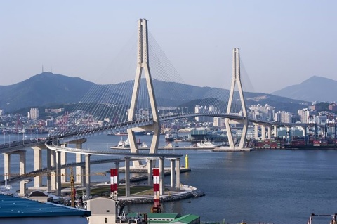 국내 최장 강합성 사장교로 건설되어 케이블의 힘전달이 우수한 경사 EDGE-I 거더 설계- 위치 부산광역시 남구